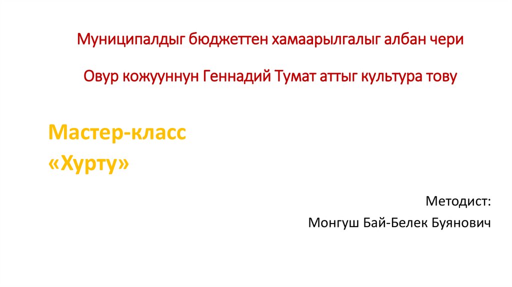 Муниципалдыг бюджеттен хамаарылгалыг албан чериОвур кожууннун Геннадий Тумат аттыг культура тову