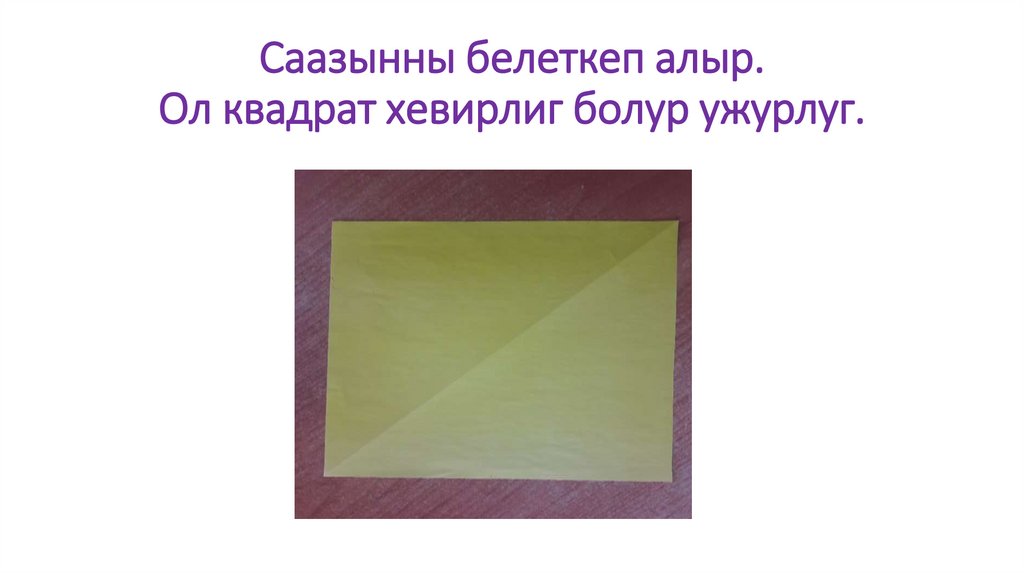 Саазынны белеткеп алыр.Ол квадрат хевирлиг болур ужурлуг.