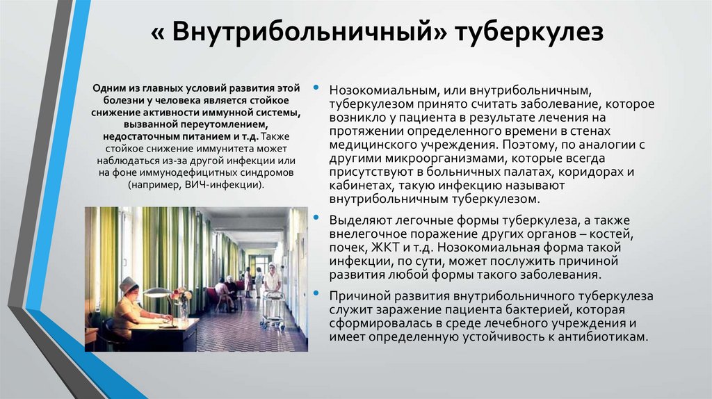 « Внутрибольничный» туберкулезОдним из главных условий развития этой