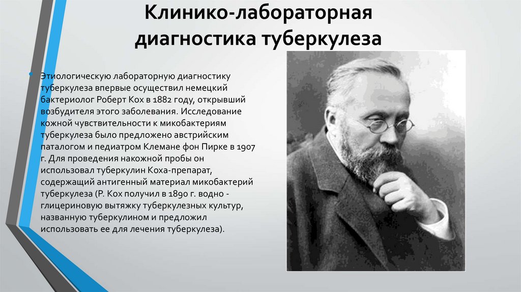 туберкулеза (Р. Кох получил в 1890 г. водно глицериновую вытяжку туберкулезных культур,