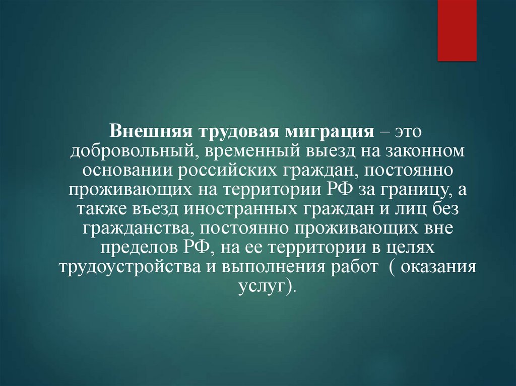 Внешняя трудовая миграция – этодобровольный, временный выезд на законном