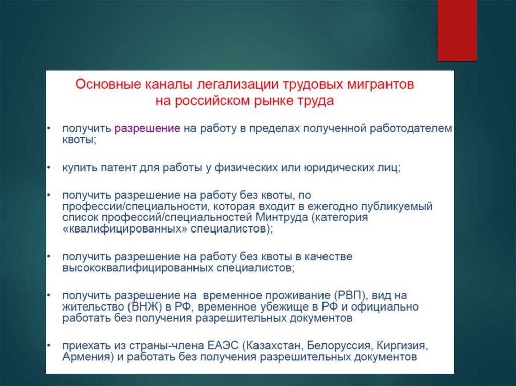 трудящегося – мигранта в стране ограничено;