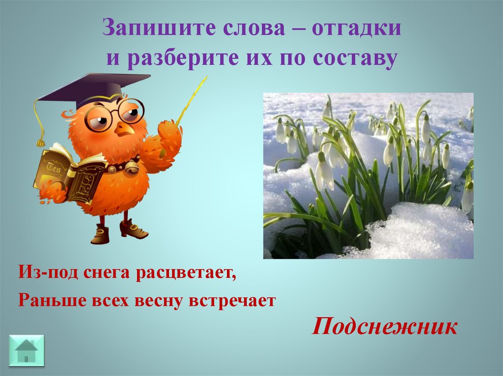 Запишите слова – отгадкии разберите их по составу