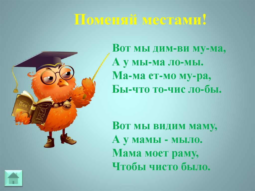 Поменяй местами!Вот мы дим-ви му-ма,