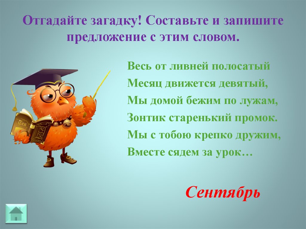 Отгадайте загадку! Составьте и запишитепредложение с этим словом.