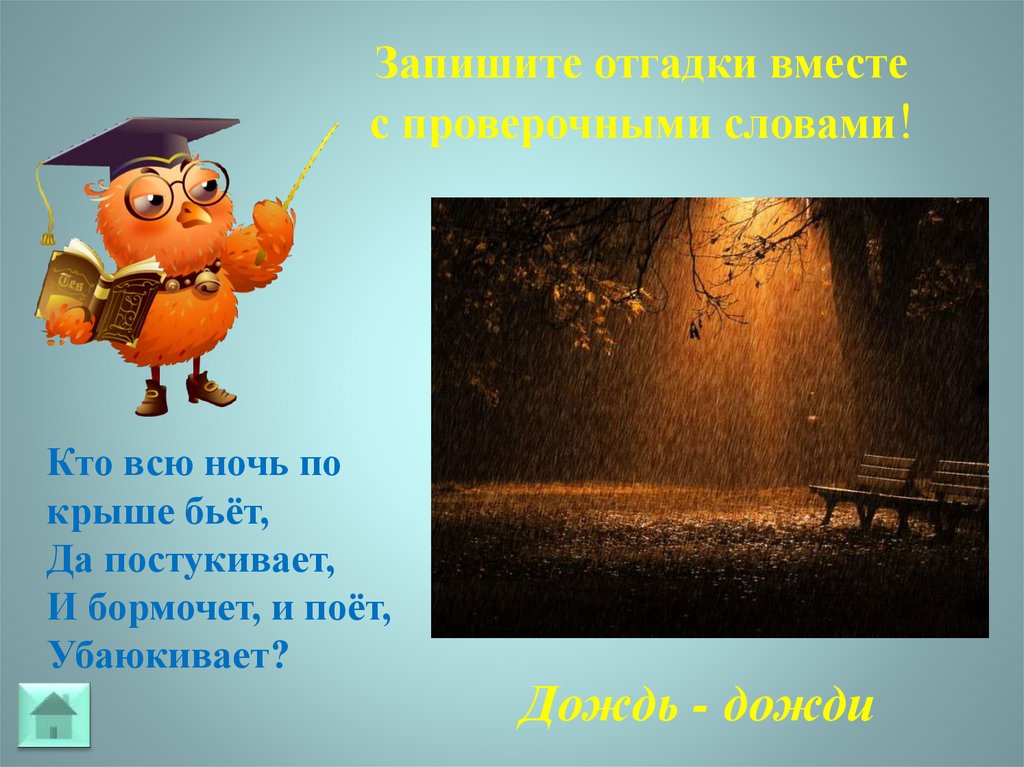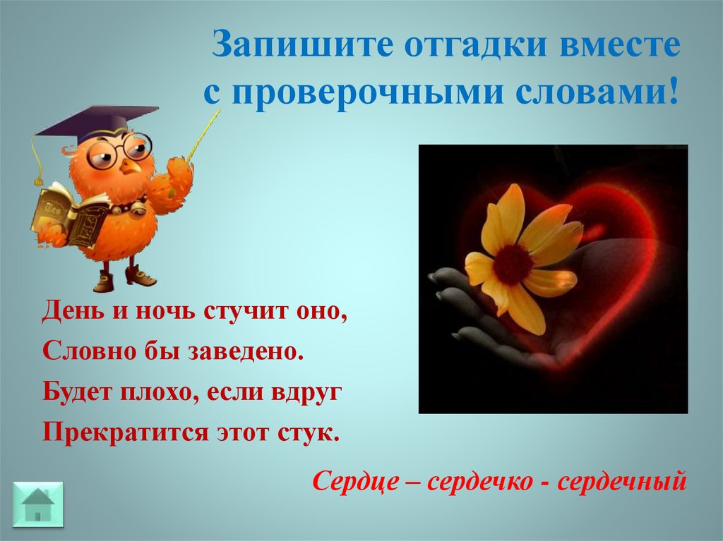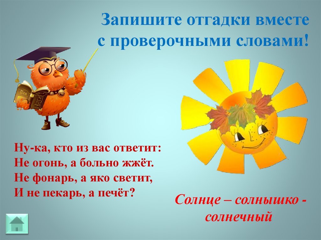 Запишите отгадки вместес проверочными словами!