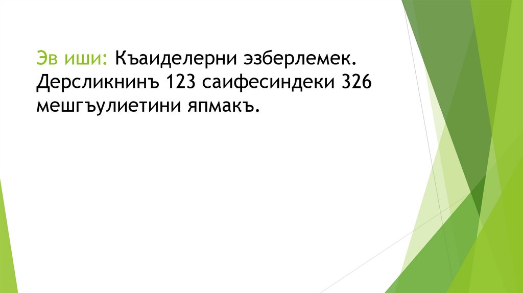 Эв иши: Къаиделерни эзберлемек.Дерсликнинъ 123 саифесиндеки 326