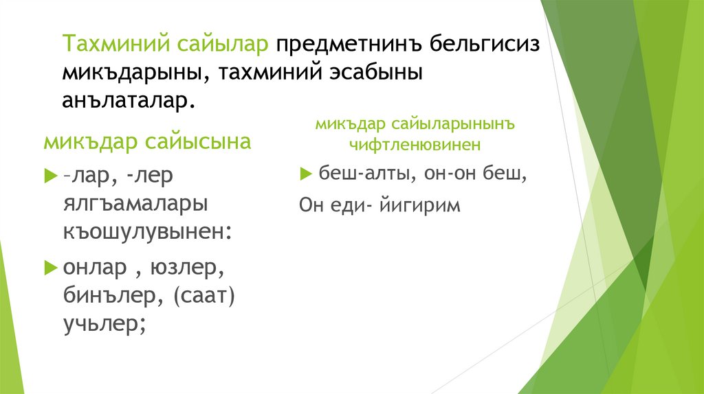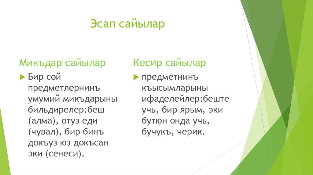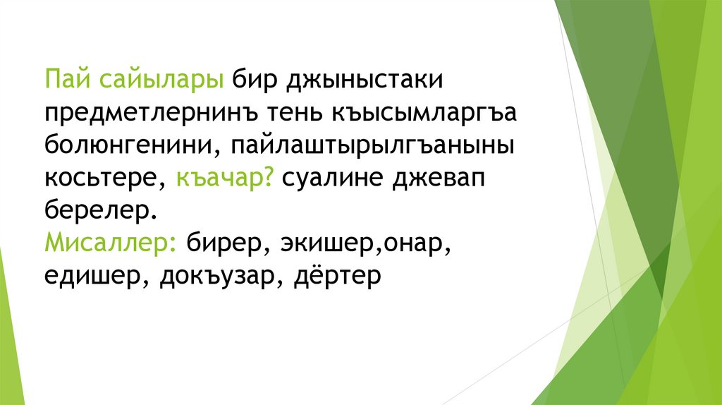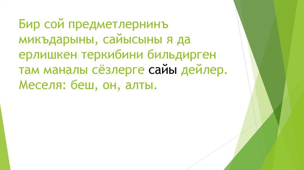 Бир сой предметлернинъмикъдарыны, сайысыны я да
