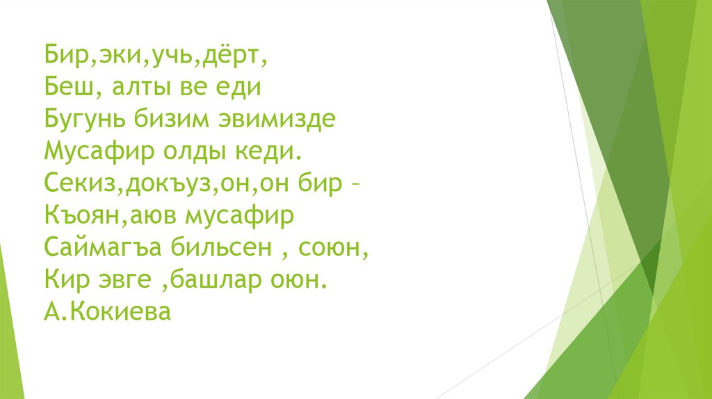Бир,эки,учь,дёрт,Беш, алты ве еди