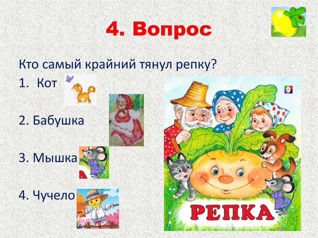1. Вопрос1. Кого подарила бабушка дедушке по его