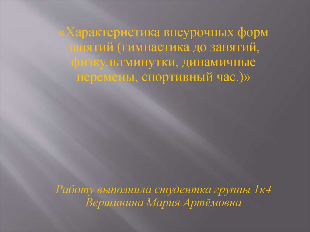 Характеристика внеурочных форм занятий: гимнастика до занятий, физкультминутки, динамичные перемены, спортивный час