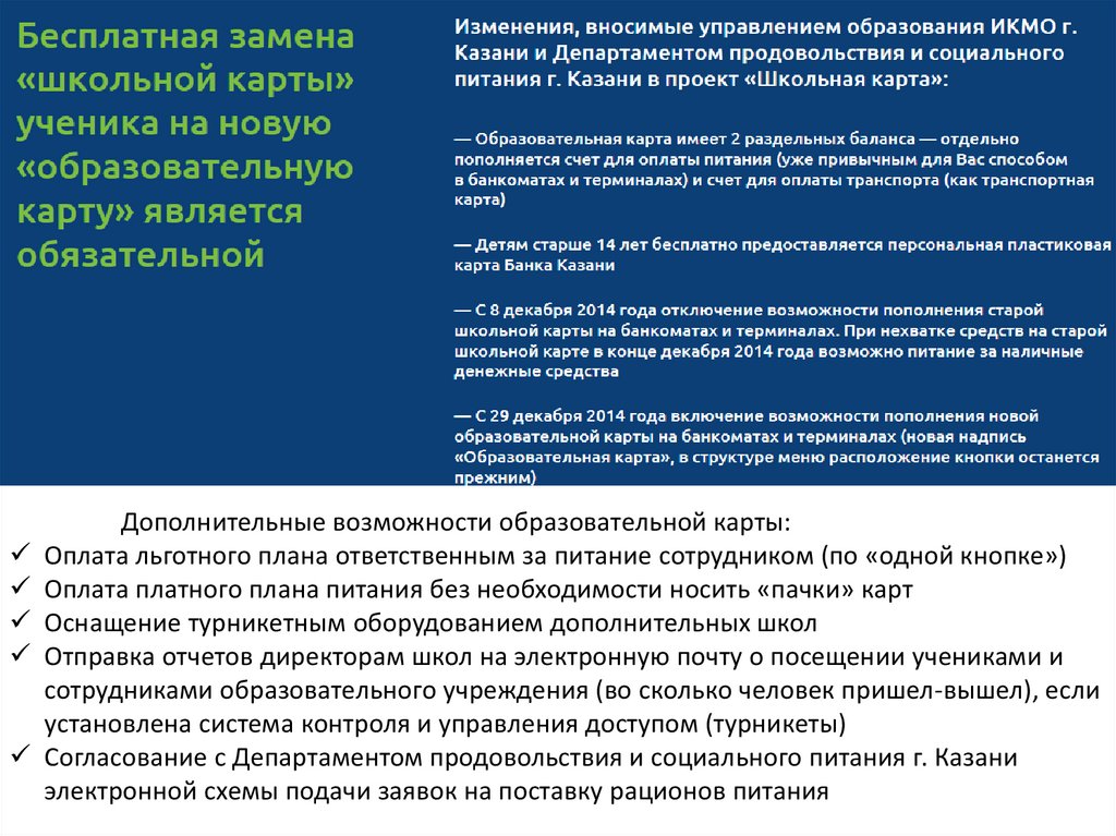 Дополнительные возможности образовательной карты:Оплата льготного плана ответственным за питание сотрудником (по «одной кнопке»)
