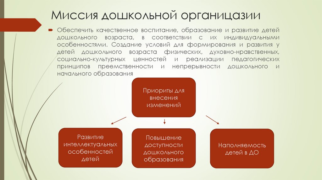 Миссия дошкольной органицазииОбеспечить качественное воспитание, образование и развитие детей
