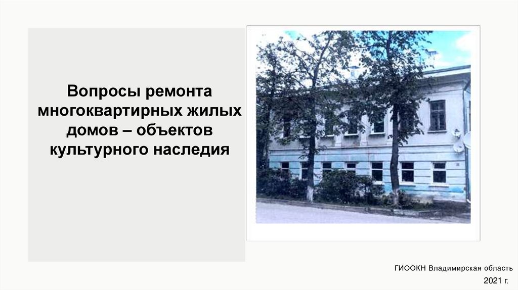 Вопросы ремонта многоквартирных жилых домов – объектов культурного наследия ГИООКН Владимирская область
