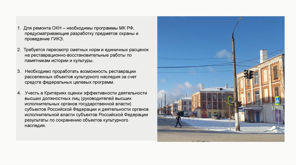 1. Для ремонта ОКН – необходимы программы МК РФ,предусматривающие разработку предметов охраны и