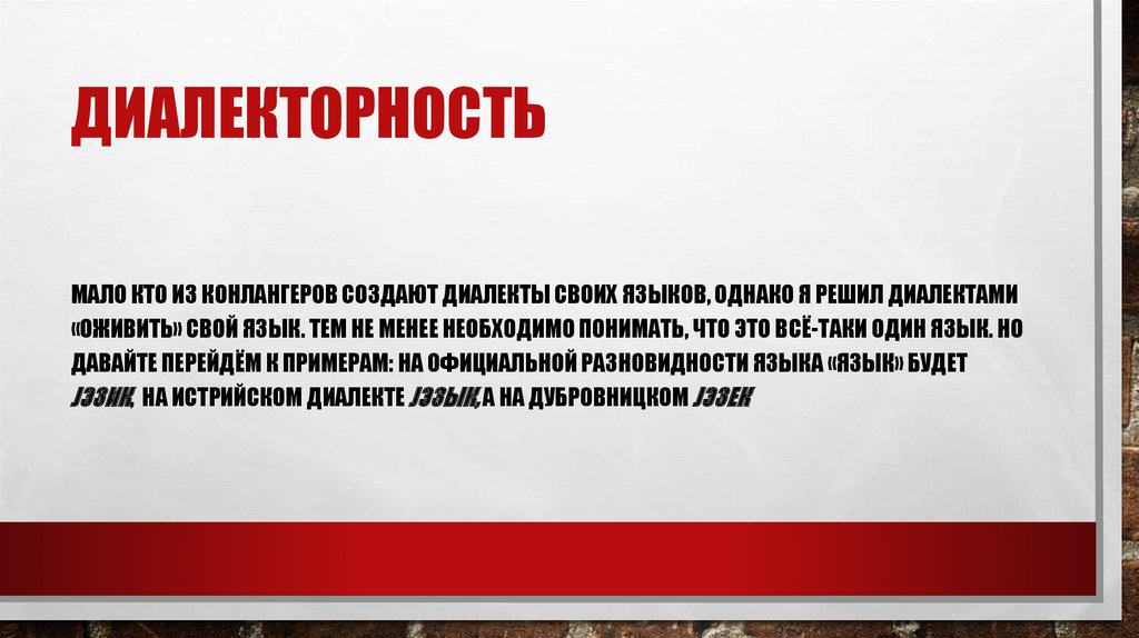 ДИАЛЕКТОРНОСТЬМАЛО КТО ИЗ КОНЛАНГЕРОВ СОЗДАЮТ ДИАЛЕКТЫ СВОИХ ЯЗЫКОВ, ОДНАКО Я РЕШИЛ ДИАЛЕКТАМИ