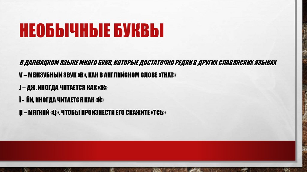 НЕОБЫЧНЫЕ БУКВЫВ ДАЛМАЦКОМ ЯЗЫКЕ МНОГО БУКВ, КОТОРЫЕ ДОСТАТОЧНО РЕДКИ В ДРУГИХ СЛАВЯНСКИХ ЯЗЫКАХ