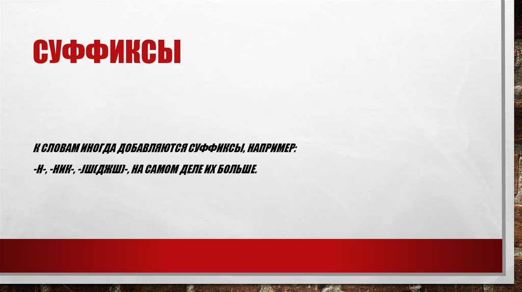 СУФФИКСЫК СЛОВАМ ИНОГДА ДОБАВЛЯЮТСЯ СУФФИКСЫ, НАПРИМЕР: