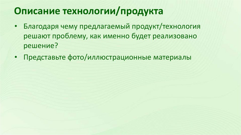 Описание технологии/продукта• Благодаря чему предлагаемый продукт/технология