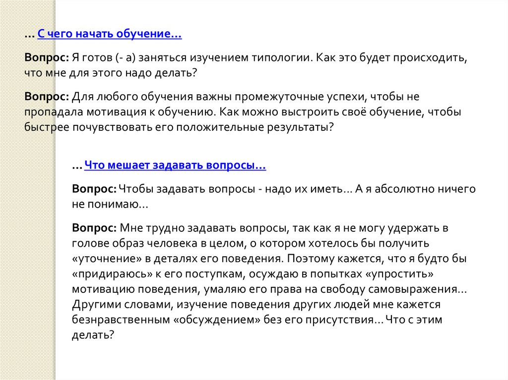… С чего начать обучение…Вопрос: Я готов (- а) заняться изучением типологии. Как это будет происходить,