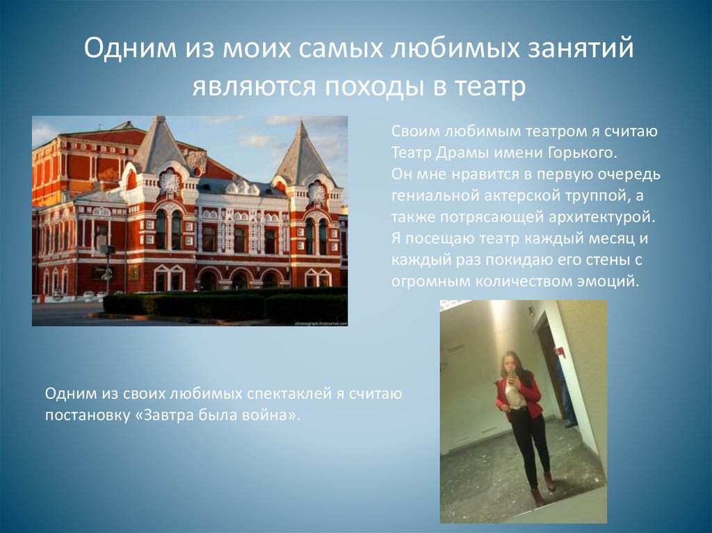 Одним из моих самых любимых занятийявляются походы в театр