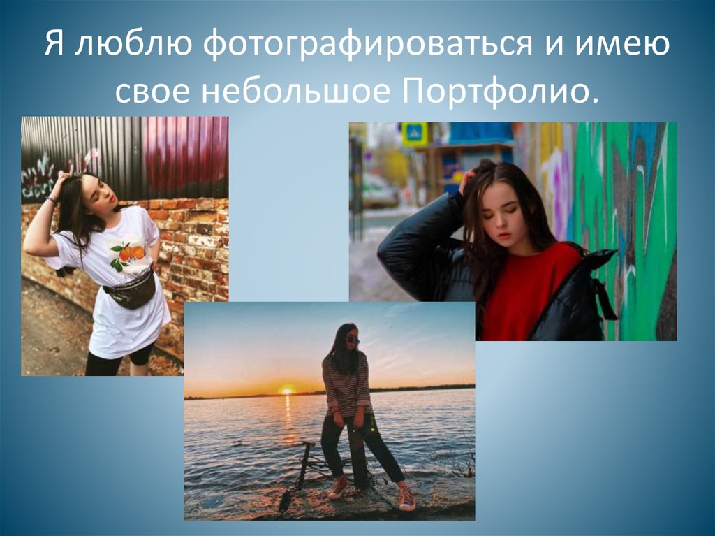 Я люблю фотографироваться и имеюсвое небольшое Портфолио.