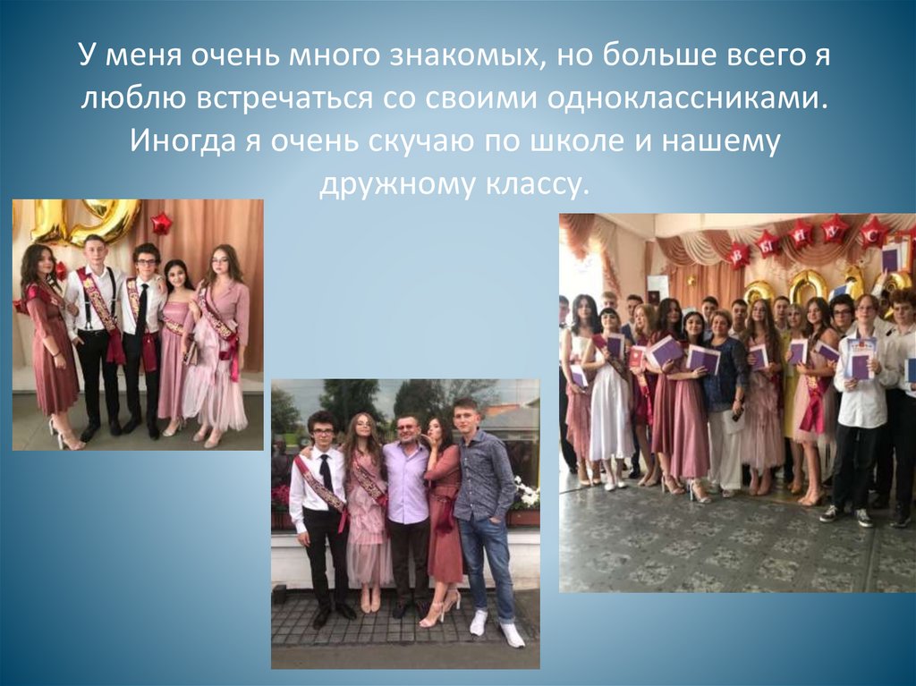 У меня очень много знакомых, но больше всего ялюблю встречаться со своими одноклассниками.