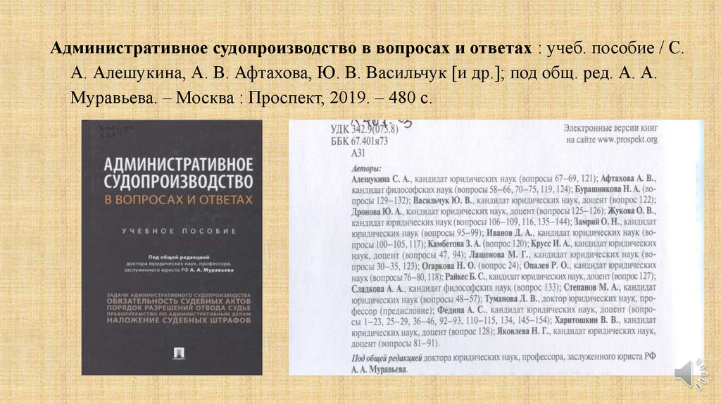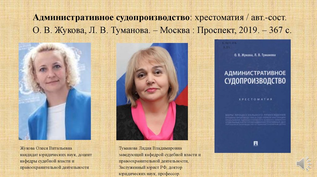 Административное судопроизводство: хрестоматия / авт.-сост.О. В. Жукова, Л. В. Туманова. – Москва : Проспект, 2019. – 367 с.