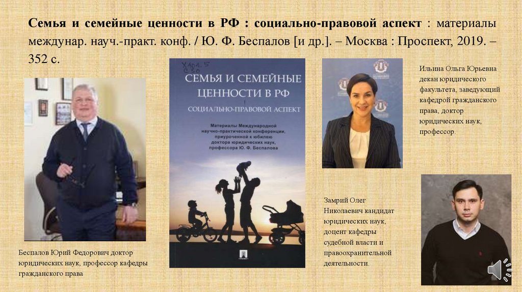 Семья и семейные ценности в РФ : социально-правовой аспект : материалымеждунар. науч.-практ. конф. / Ю. Ф. Беспалов [и др.]. – Москва : Проспект, 2019. –
