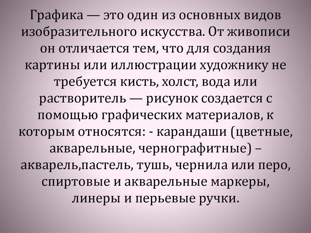 Графика — это один из основных видовизобразительного искусства. От живописи
