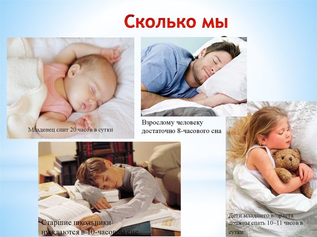Младенец спит 20 часов в суткиСтаршие школьники