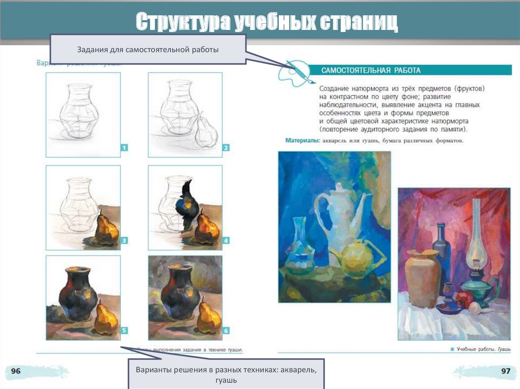 Структура учебных страницЗадания для самостоятельной работы