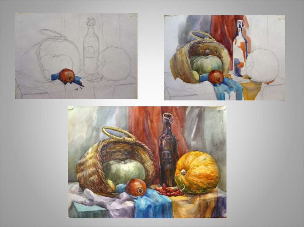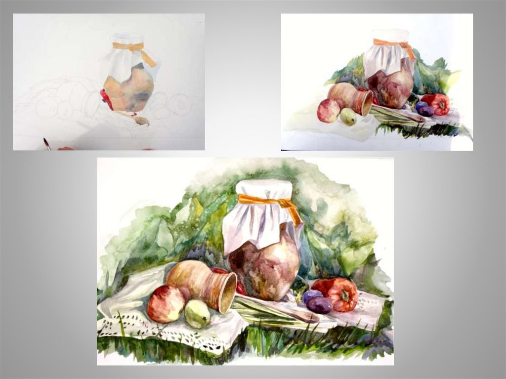 Варианты решения в разных техниках: акварель,