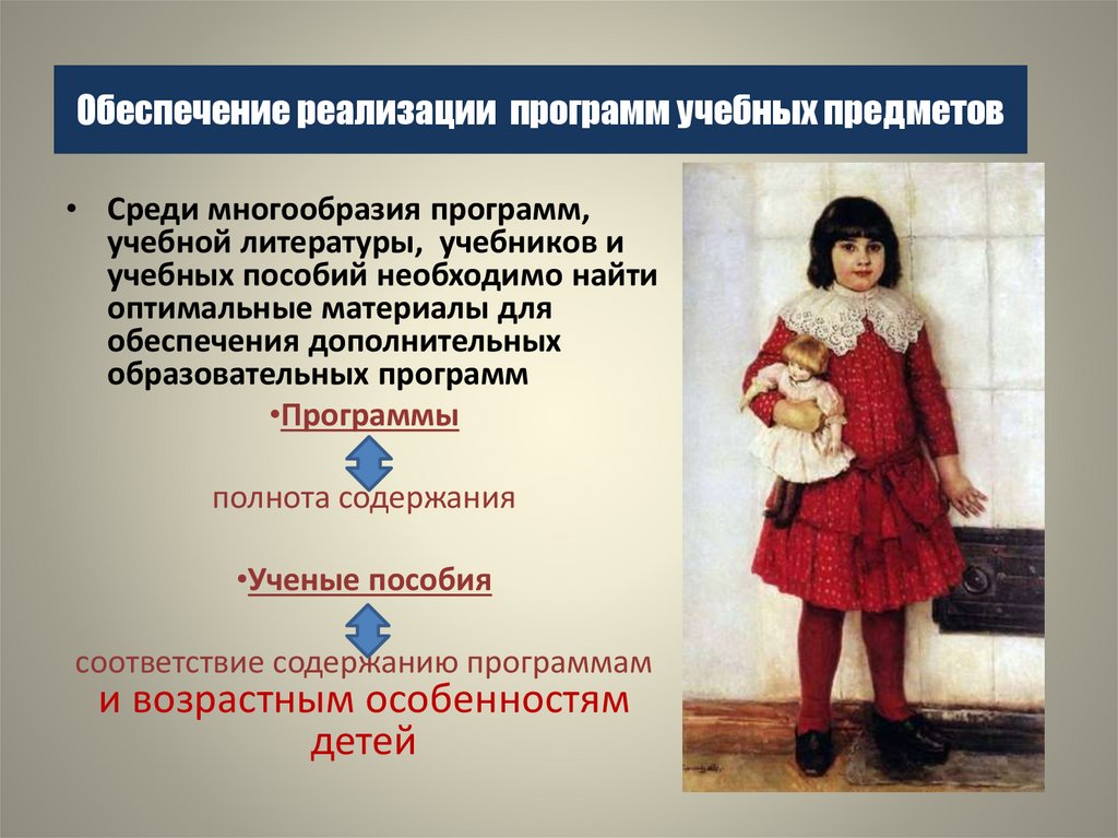 Обеспечение реализации программ учебных предметов• Среди многообразия программ,