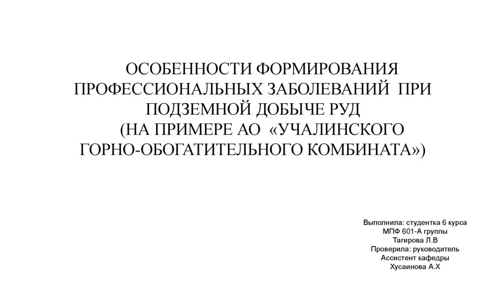 Особенности формирования профессиональных заболеваний при подземной добыче руд