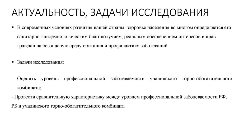АКТУАЛЬНОСТЬ, ЗАДАЧИ ИССЛЕДОВАНИЯВ современных условиях развития нашей страны, здоровье населения во многом определяется его
