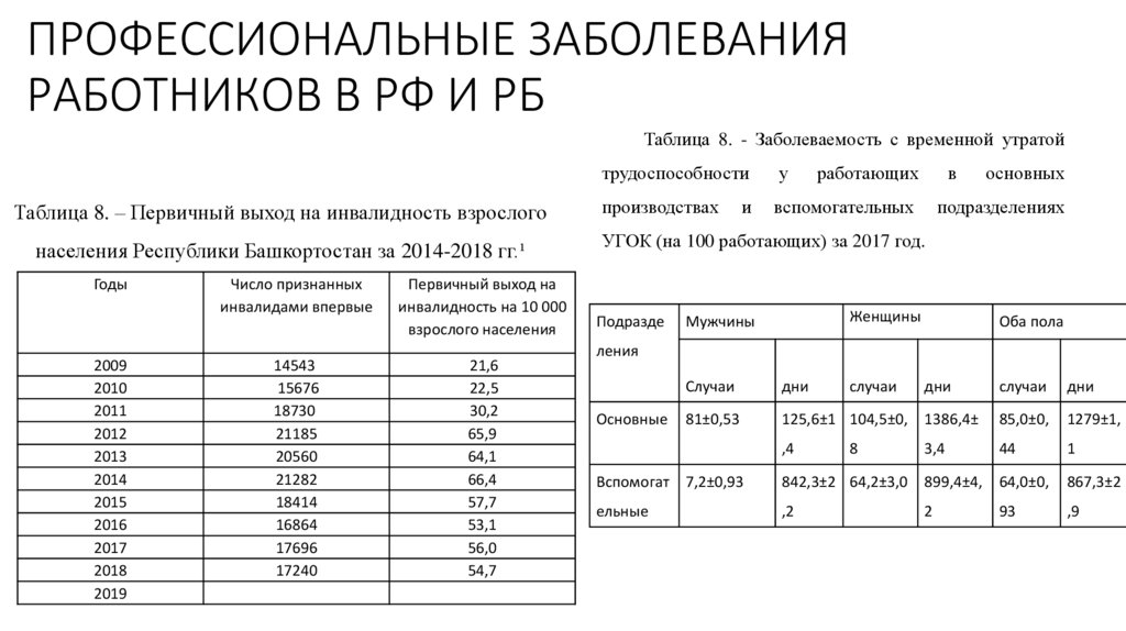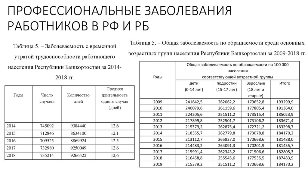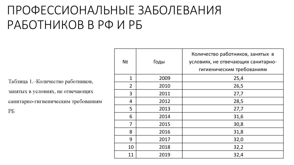 ПРОФЕССИОНАЛЬНЫЕ ЗАБОЛЕВАНИЯРАБОТНИКОВ В РФ И РБ