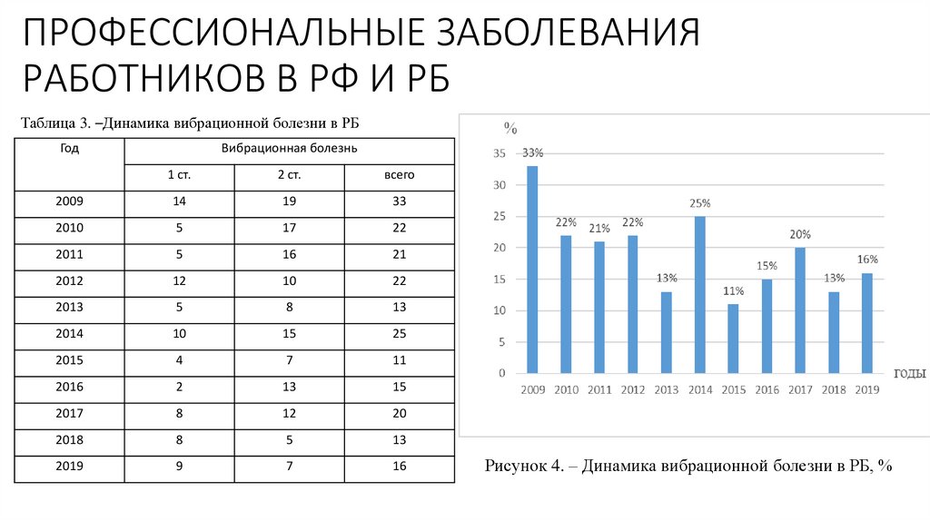 Таблица 3. –Динамика вибрационной болезни в РБ