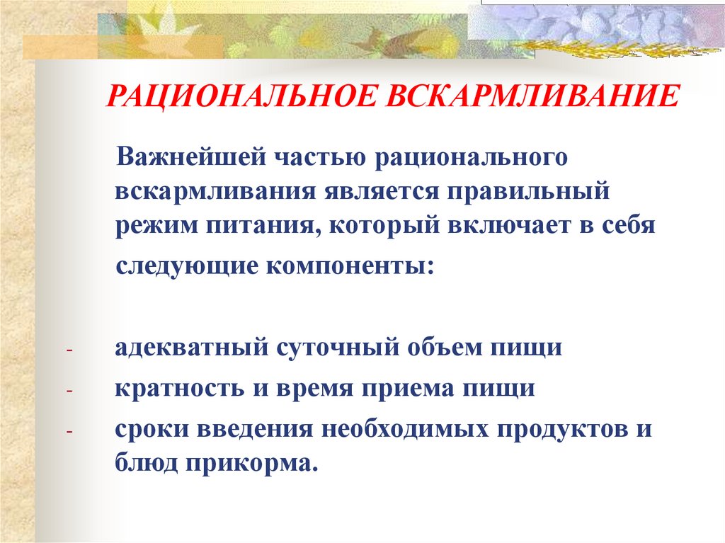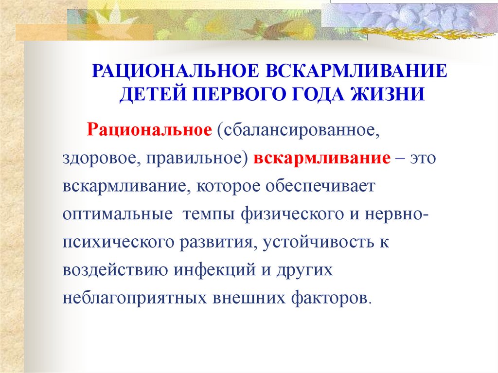 РАЦИОНАЛЬНОЕ ВСКАРМЛИВАНИЕДЕТЕЙ ПЕРВОГО ГОДА ЖИЗНИ