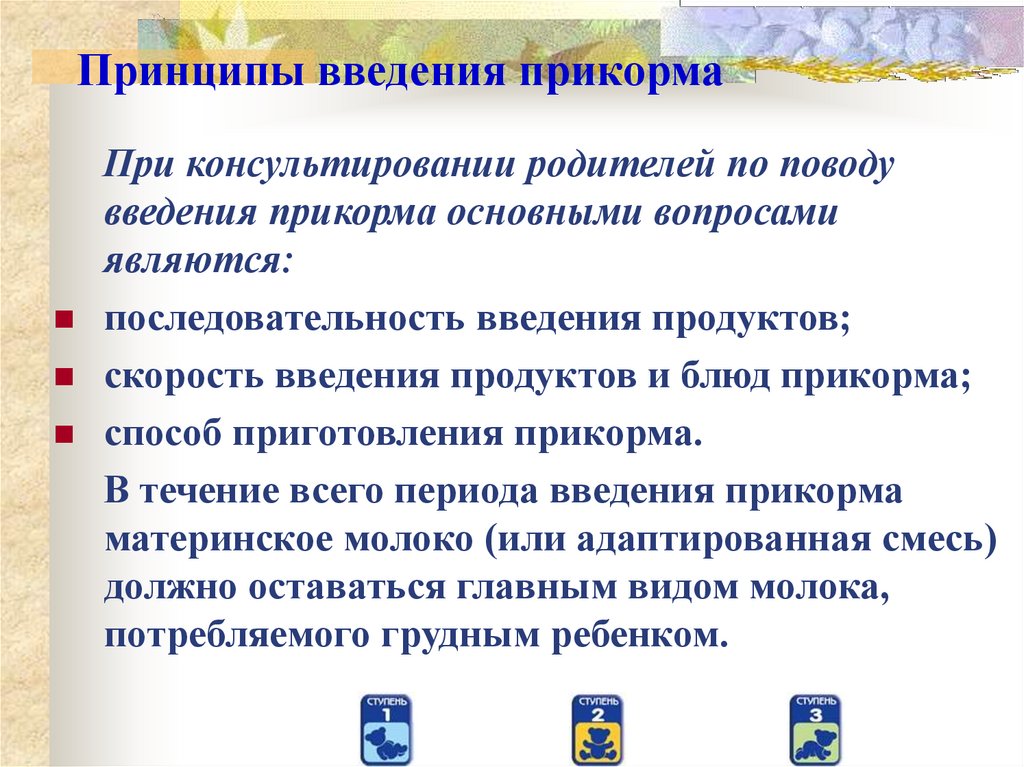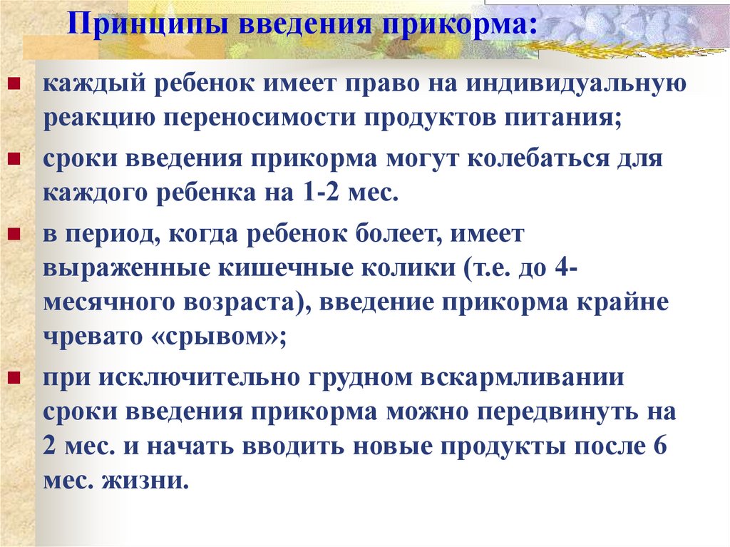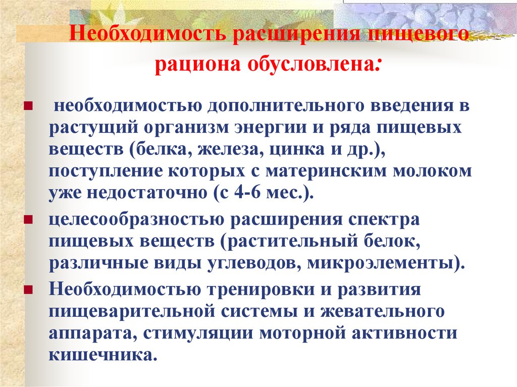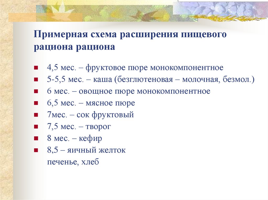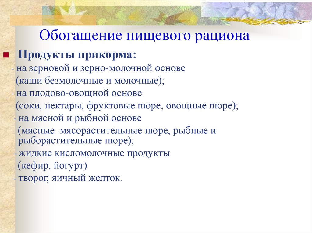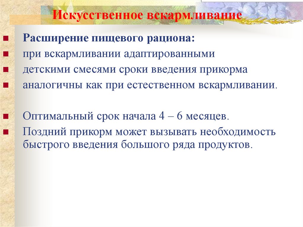 Искусственное вскармливаниеРасширение пищевого рациона: