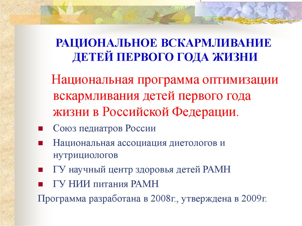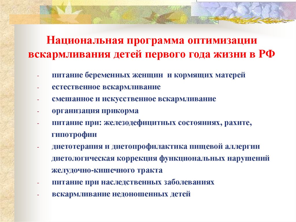 Национальная программа оптимизациивскармливания детей первого года жизни в РФ