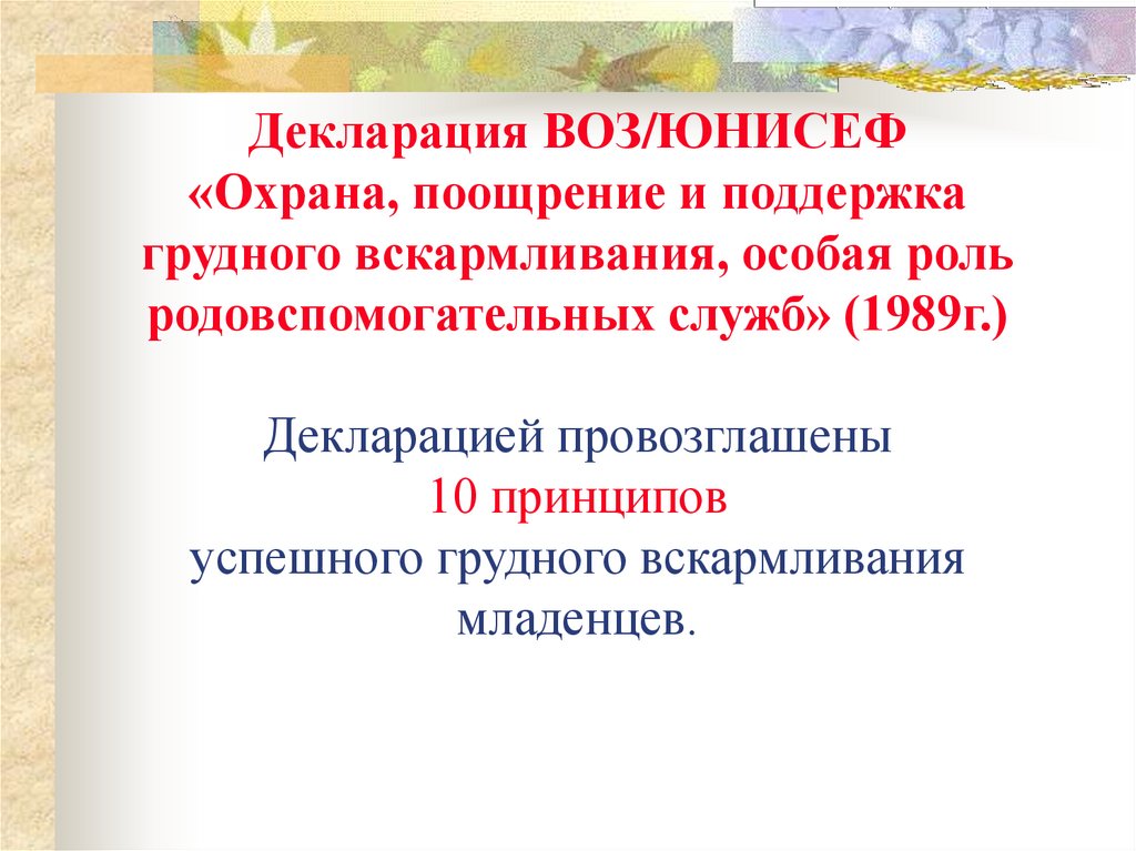 Декларация ВОЗ/ЮНИСЕФ«Охрана, поощрение и поддержка