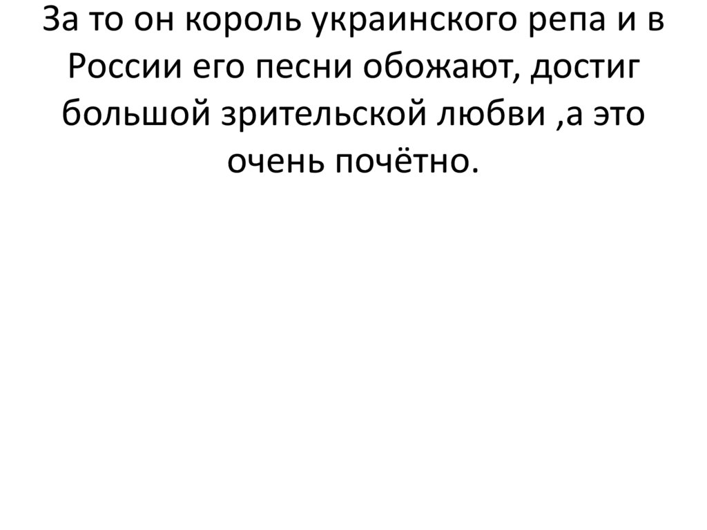 За то он король украинского репа и вРоссии его песни обожают, достиг