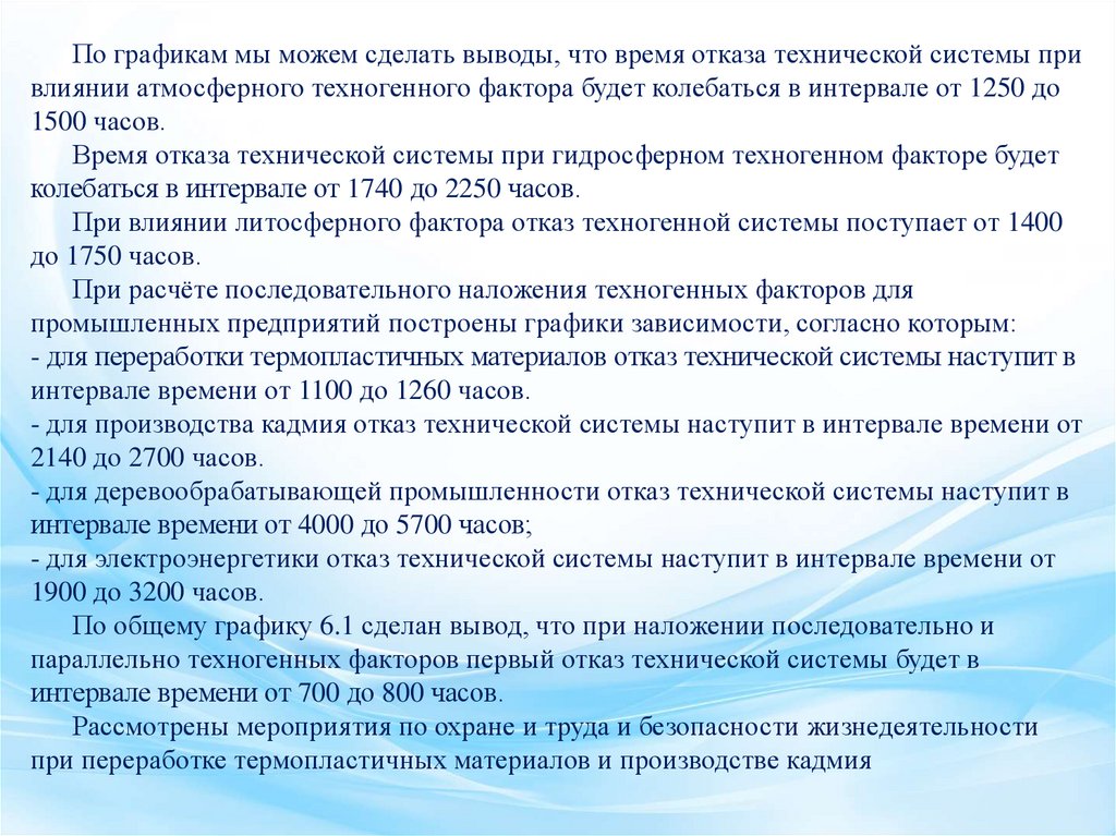- для электроэнергетики отказ технической системы наступит в интервале времени от