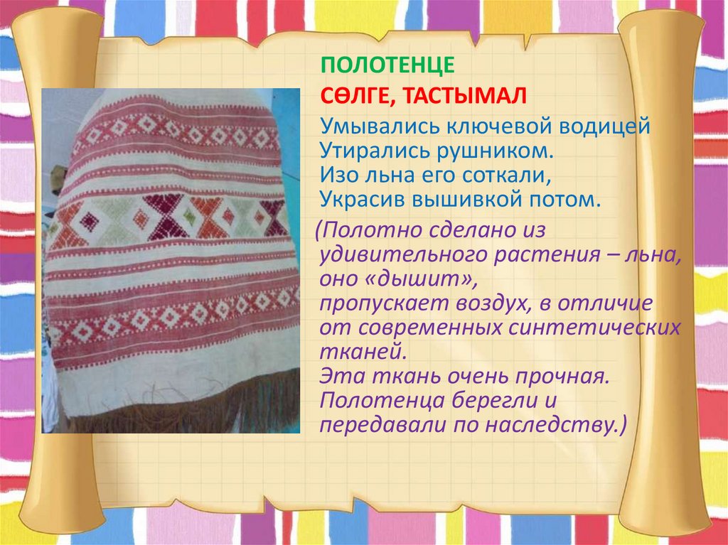 ПОЛОТЕНЦЕСӨЛГЕ, ТАСТЫМАЛ