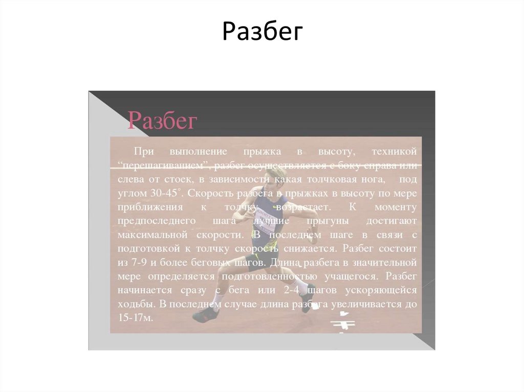 Следует помнить, что разбег выполняется с постепенным увеличением
