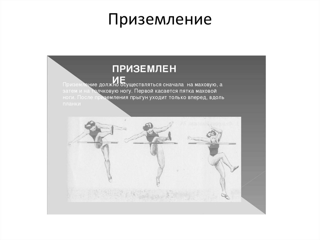 Прыгун приземляется на маховую ногу. Техника прыжков в целом изучается