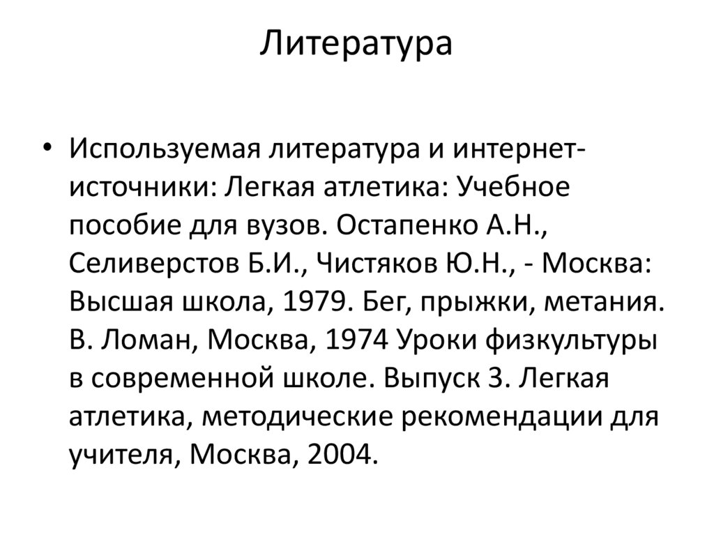 Литература• Используемая литература и интернетисточники: Легкая атлетика: Учебное