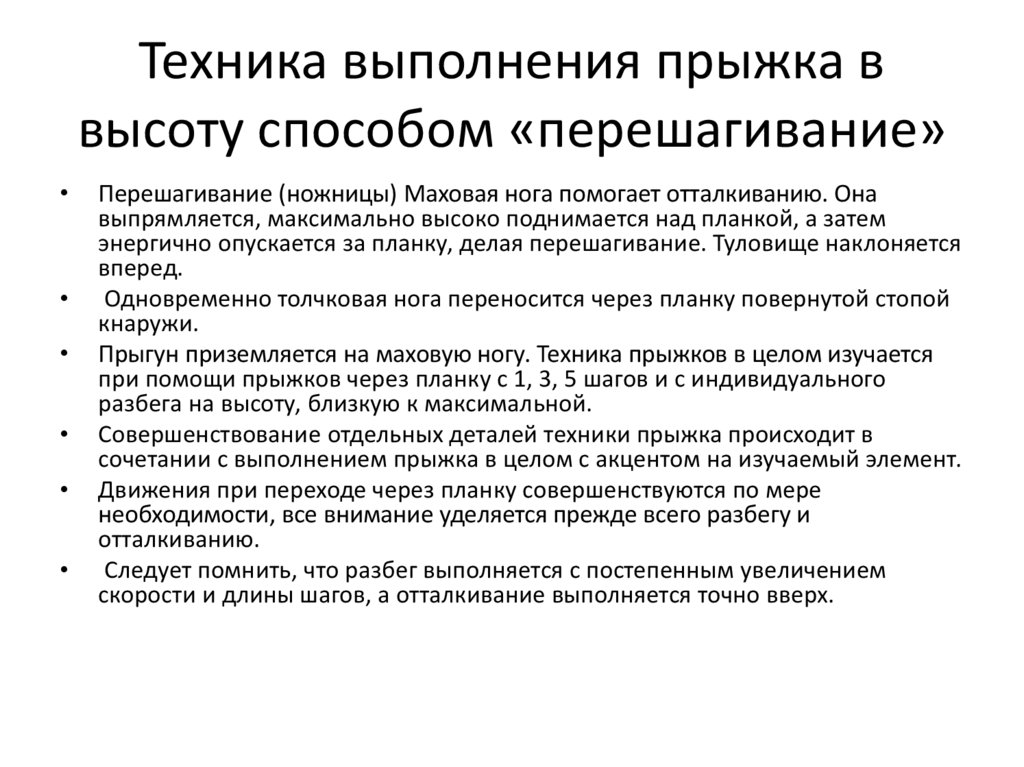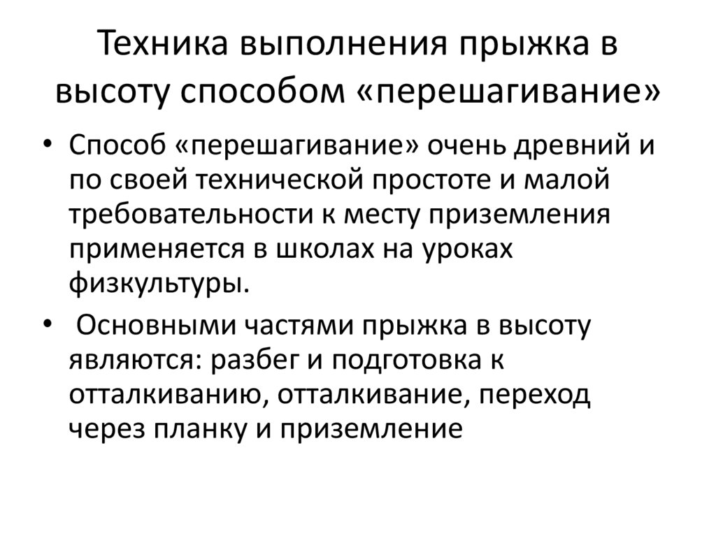Техника выполнения прыжка ввысоту способом «перешагивание»