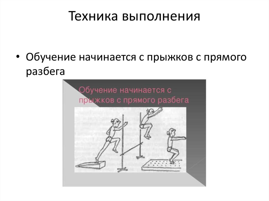 Техника выполнения• Обучение начинается с прыжков с прямого
